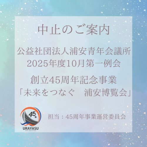 10月第一例会創立45周年記念事業「未来をつなぐ 浦安博覧会」中止のご案内- #お知らせ